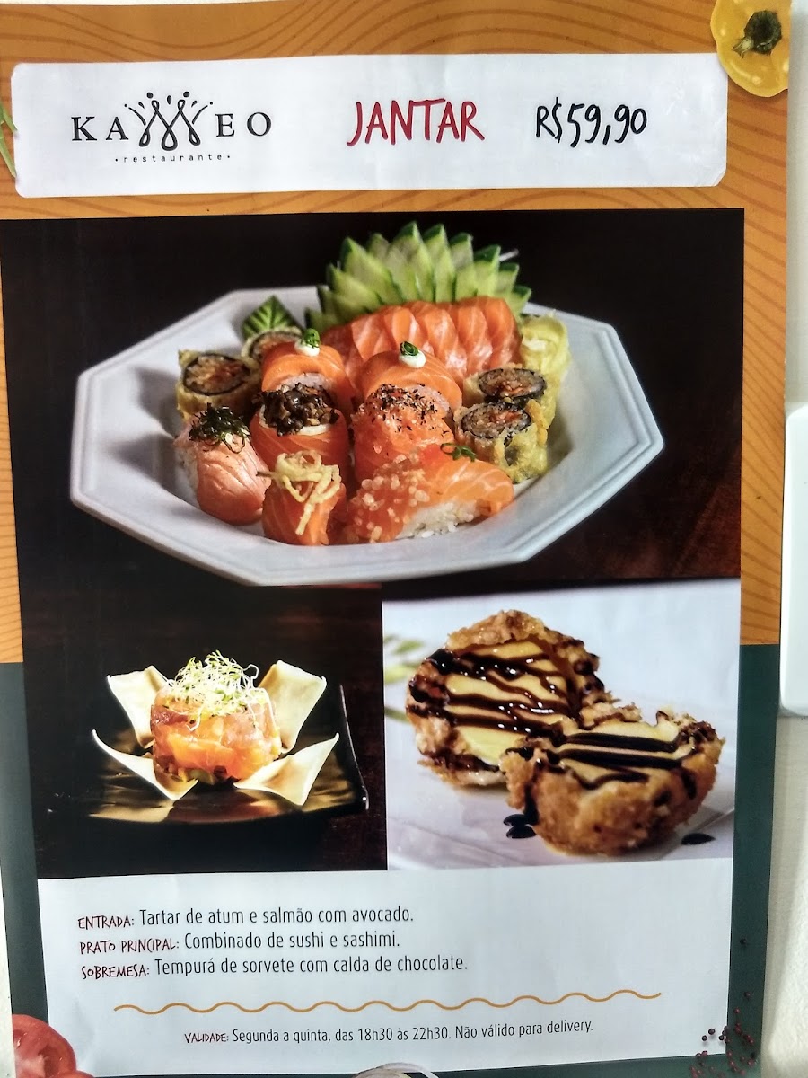 The menu at Restaurante Kameo delivers a refined balance of traditional Japanese flavors with a contemporary twist, making it a standout in Bauru's dining scene. The highlight, Combinado Especial, offers a meticulously curated selection of fresh sushi and sashimi, each piece crafted with precision and vibrant presentation. Equally notable, the California Roll impresses with its perfect combination of creamy avocado, crisp cucumber, and delicate seafood, wrapped in a tender layer of seasoned rice and nori. Beyond these signature items, the menu presents a variety of nigiri, maki, and temaki options, each emphasizing quality ingredients and thoughtful seasoning. The careful attention to detail in preparation and plating ensures that every dish feels both sophisticated and approachable, making Restaurante Kameo a destination for those seeking a satisfying Japanese culinary experience without sacrificing freshness or flavor. The menu’s balance between inventive combinations and classic favorites caters to both seasoned sushi enthusiasts and newcomers alike, maintaining a level of consistency that makes returning to the restaurant a pleasure. Overall, Restaurante Kameo’s menu is a testament to its dedication to high-quality ingredients, refined techniques, and a memorable dining experience in every bite.